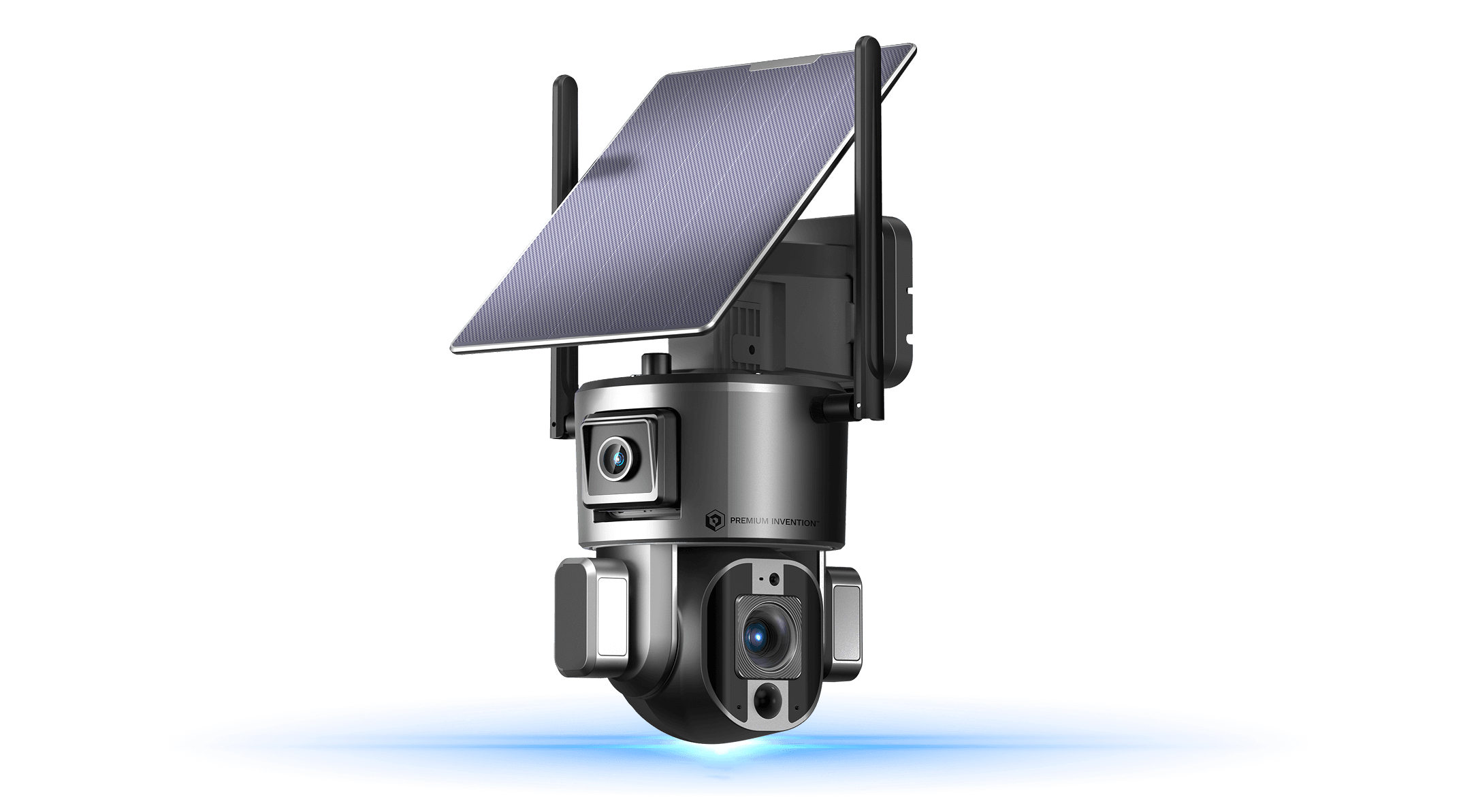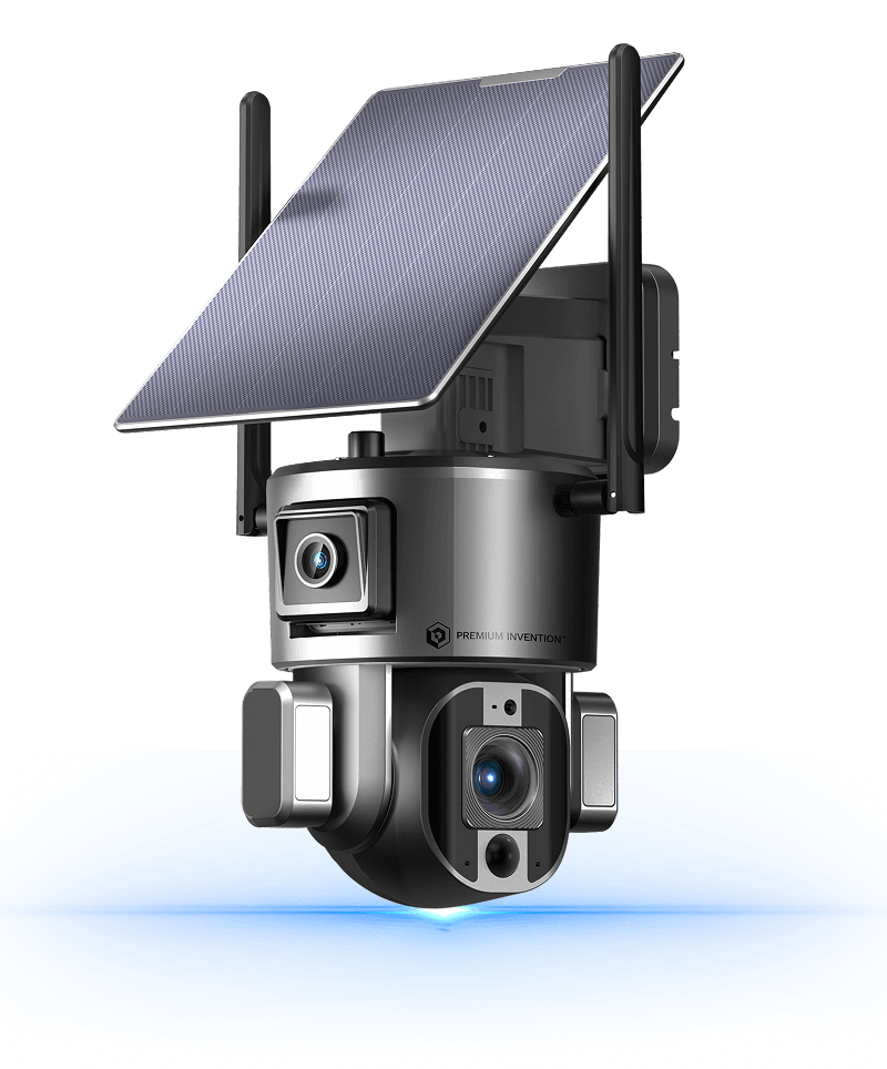 The top lens provide uninterrupted monitoring of the main area, while the bottom lens auto tracks movement in real time.